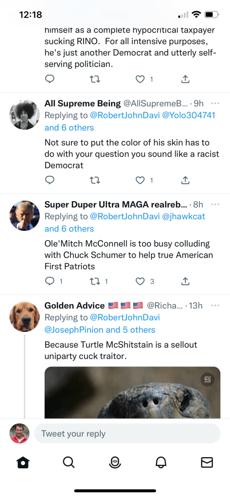 Why do Tweets end up here? To be completely honest, I believe there’s a wide range of metrics in play with the algorithm being used that does a lot of the automated work on Twitter. There’s no set answer. However, the obvious is that there are far more Donald Trump supporters and Republican opinions in this area than there are Democrats.